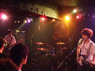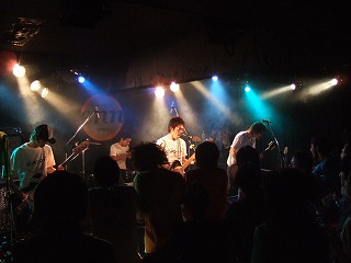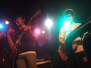 | トップバッターはthe carries | うおっと、ヤグチも乱入! | 注:約一名エアギターしている人がいます。 |